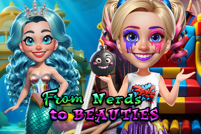 From Nerds to Beauties ist ein zauberhaftes Umstyling-Abenteuer mit zwei besten Freundinnen, Ariene und der kleinen Meerjungfrau, auf ihrer Reise zum Glam! Hilf ihnen, ihr unbeholfenes Aussehen hinter sich zu lassen und selbstbewusst ins Rampenlicht zu treten. In der ersten Phase verwöhnst du sie mit lustigen Schönheitsritualen, wie z. B. einer strahlenden Hautpflege und einem fabelhaften Haar-Makeover. Dann kannst du deinen inneren Stylisten spielen lassen und trendige Frisuren, schicke Outfits und glitzernde Accessoires aussuchen, um ihre Verwandlung zu vollenden. Jede Entscheidung, die du triffst, bringt sie dem Ziel, eine echte Modeikone zu werden, einen Schritt näher!